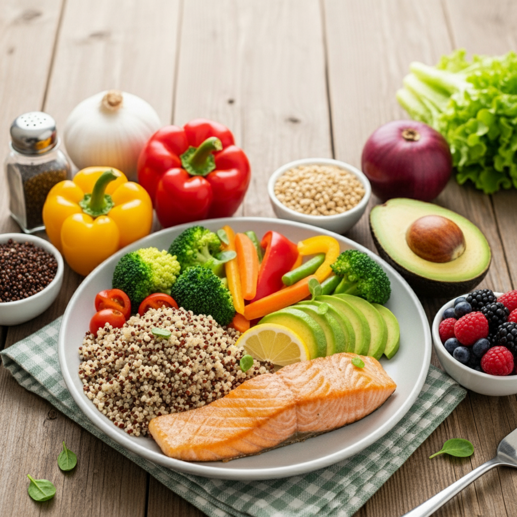 - Combinación Correcta: Proteínas + Vegetales sin almidón (ensaladas, brócoli, espinaca)